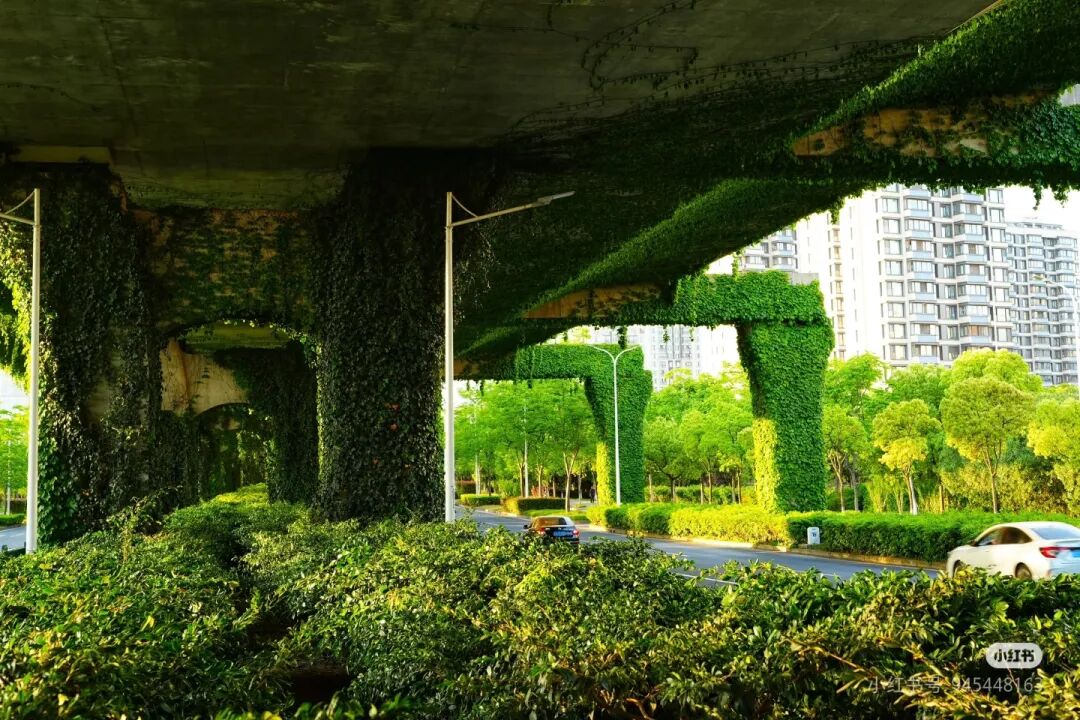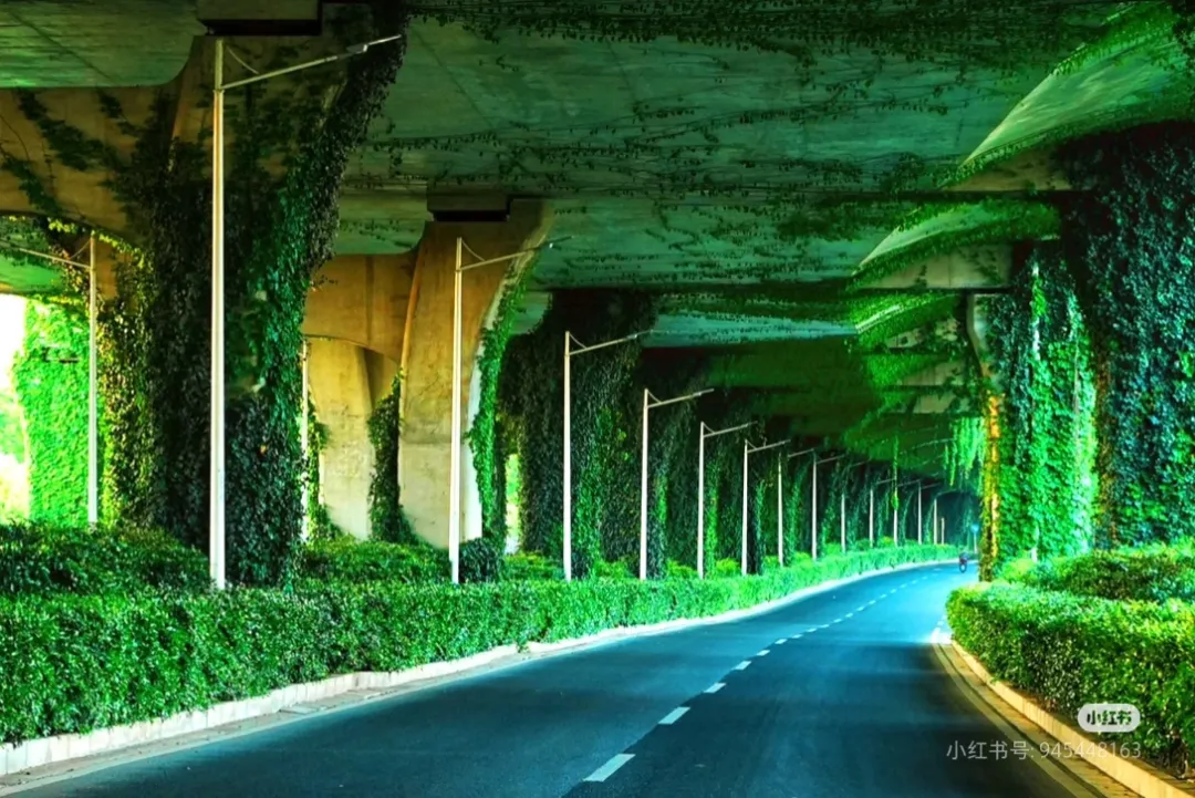 图源:博主@奇薇 摄于汶水路还有网友拍下了高架桥上绿植夏天一片浓郁翠绿的样子让人感觉空气里的温度也顿时清凉了不少